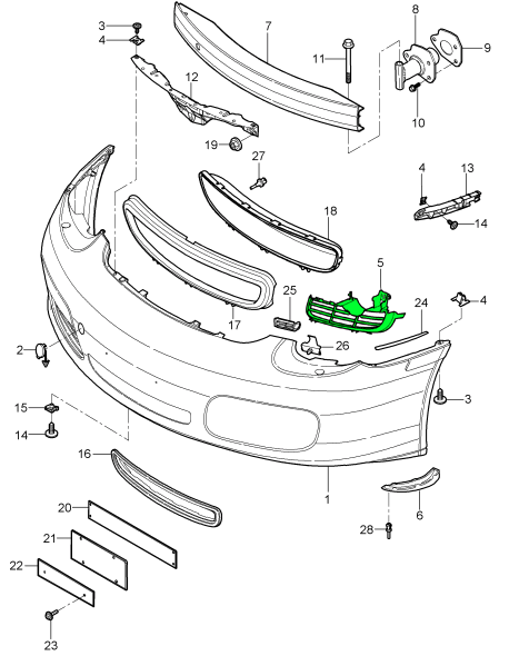 Front bumper cover cap. Porsche 955 Cayenne 3.2L - 95550514