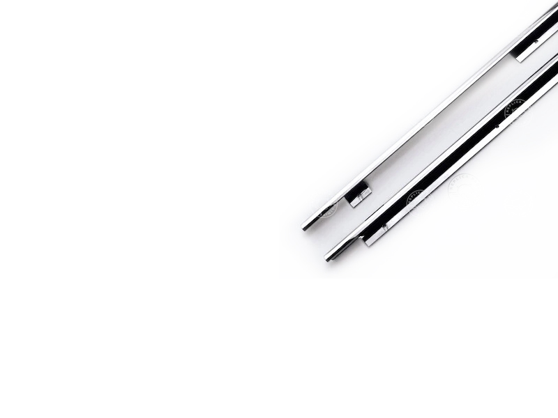 This Porsche 356 chrome door trims kit is ready to fit. An exact duplicate of the original door-top trim is made with precision extruded brass. The pieces are trimmed, finished, notched and drilled to fit before being treated to a triple-plated chrome finish.