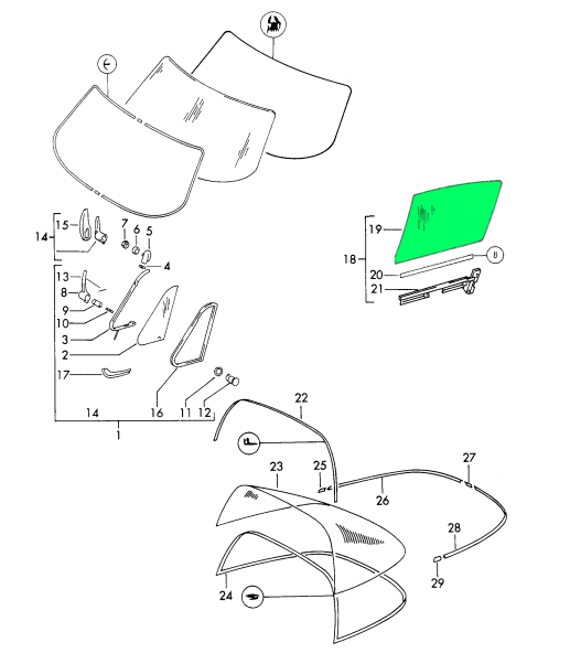 Installed inside the Targa door window frame, the glass slides up and down on its track and works with window seals and regulators to provide a weather-tight, noise-reducing barrier. It maintains clear sightlines and integrates with the vehicle’s original trim, hardware, and channels.