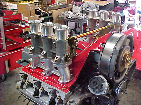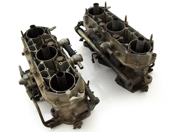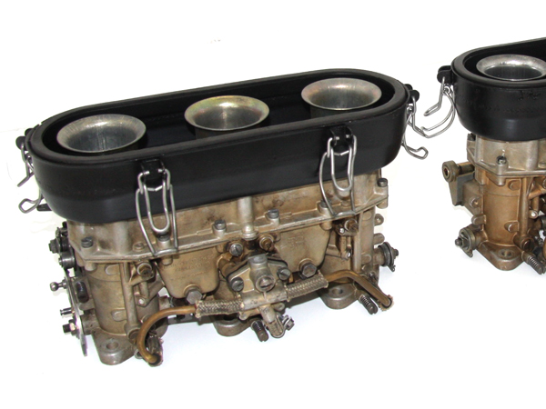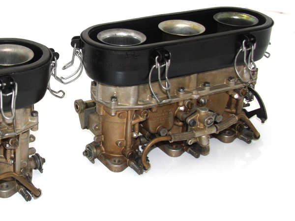 Since they designed a larger carburetor from scratch, the air entry and flow is much greater than the three barrel Weber. This is accomplished by having larger main barrels in the throttle body, tapering the top covers and then installing larger diameter velocity stacks of corresponding taper. This maintains the boost from the velocity stacks down to the exact point where it operates on the auxiliary venturis.