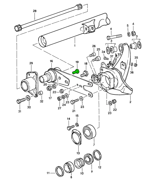 12-piece bolt set for the rear axle of various Porsche models.