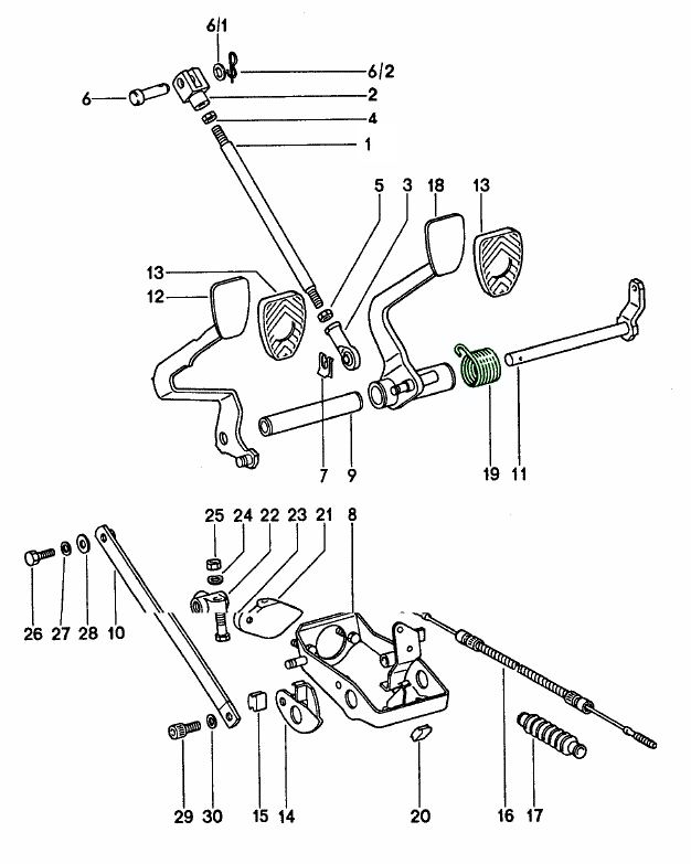 Worn brake pedal bushings or sticking accelerator bushing cause serious accidents. The ultimate solution is a set of Design 911 precision sintered bronze pedal bushings. This is a comprehensive pedal box rebuild kit, with seven heavy duty bushings for the clutch cable arm, brake, clutch, and throttle pedals, and a new spring/roll clutch pedal retaining pin.
