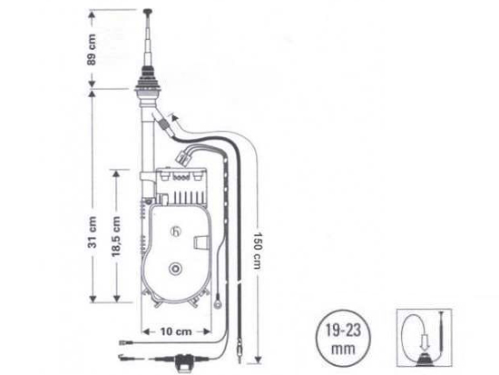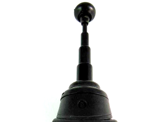 Lockable, a good quality black chromatized aerial with unscrewable coaxcable and fixing parts.
