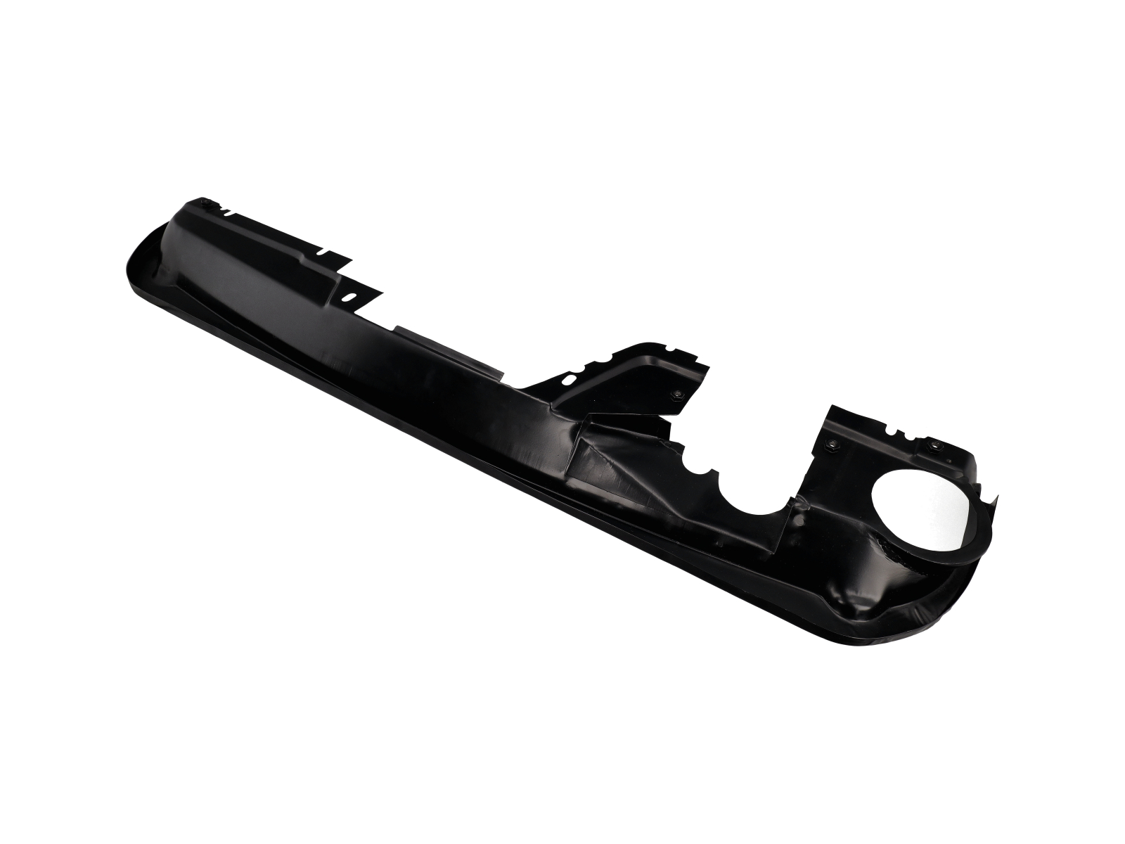 Engine tinware panels often corrode, crack, or get bent during engine work. Missing or damaged covers can reduce airflow efficiency and allow unwanted hot-air recirculation, which may contribute to higher operating temps. Replacing the right-side cover helps restore factory-style airflow control and a tidy, properly sealed engine bay.