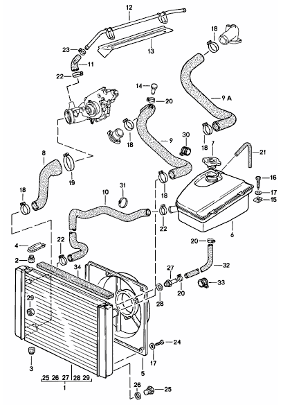 This high-efficiency aluminium water-radiator is designed for Porsche 924S and Porsche 944 (manual gearbox) models. It reproduces Porsche’s factory specification—featuring correct core size, inlet/outlet positions, mounting bracket fitment and cooling performance. This radiator ensures proper engine cooling, consistent operating temperatures and long-term reliability.