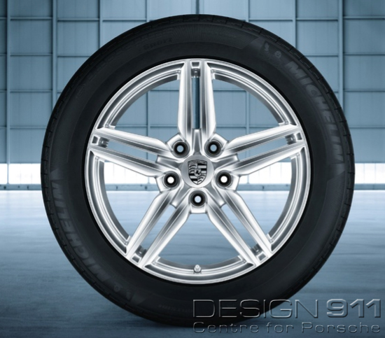 Original Porsche 19-inch Cayenne Design II summer wheel-and-tyre set. One-piece alloy wheel in 5-spoke lightweight design.Wheel dimensions (offset (ET) in mm):