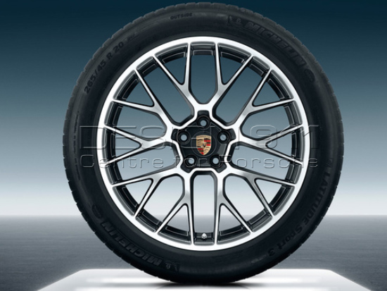 Original Porsche 20-inch Macan RS Spyder Design summer wheel-and-tyre set. Alloy wheel in racing look with bright-polished rim flange. For a particularly sporty performance. For vehicles with Tyre Pressure Monitoring.Wheel dimensions (offset (ET) in mm):