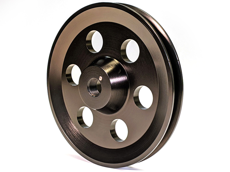 CNC machined from 2024 aircraft alloy, hard anodized for wear and drilled to reduce weight.