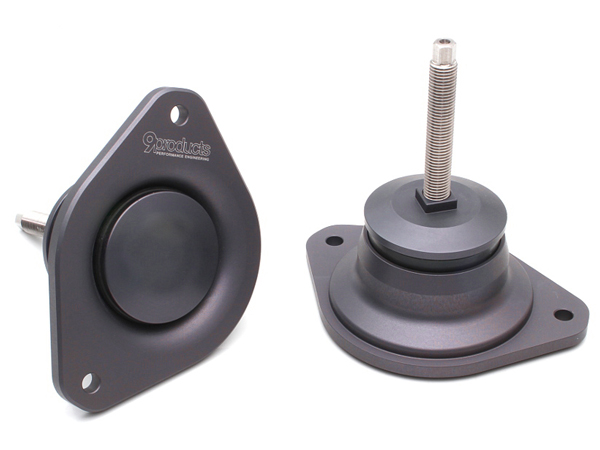 9products engine / gearbox semi-solid mounts are great for both street and racing. A common problem with the original soft rubber mounts – especially in racing – is the difficulty in changing the gears properly. 9products semi-solid mounts stabilize the car and makes the gear changing smooth by firmly mounting the engine and transmission to a chassis. The material is 6082 aluminium. The mounts are plated to be highly corrosion resistant and they would last forever even in professional racing conditions.