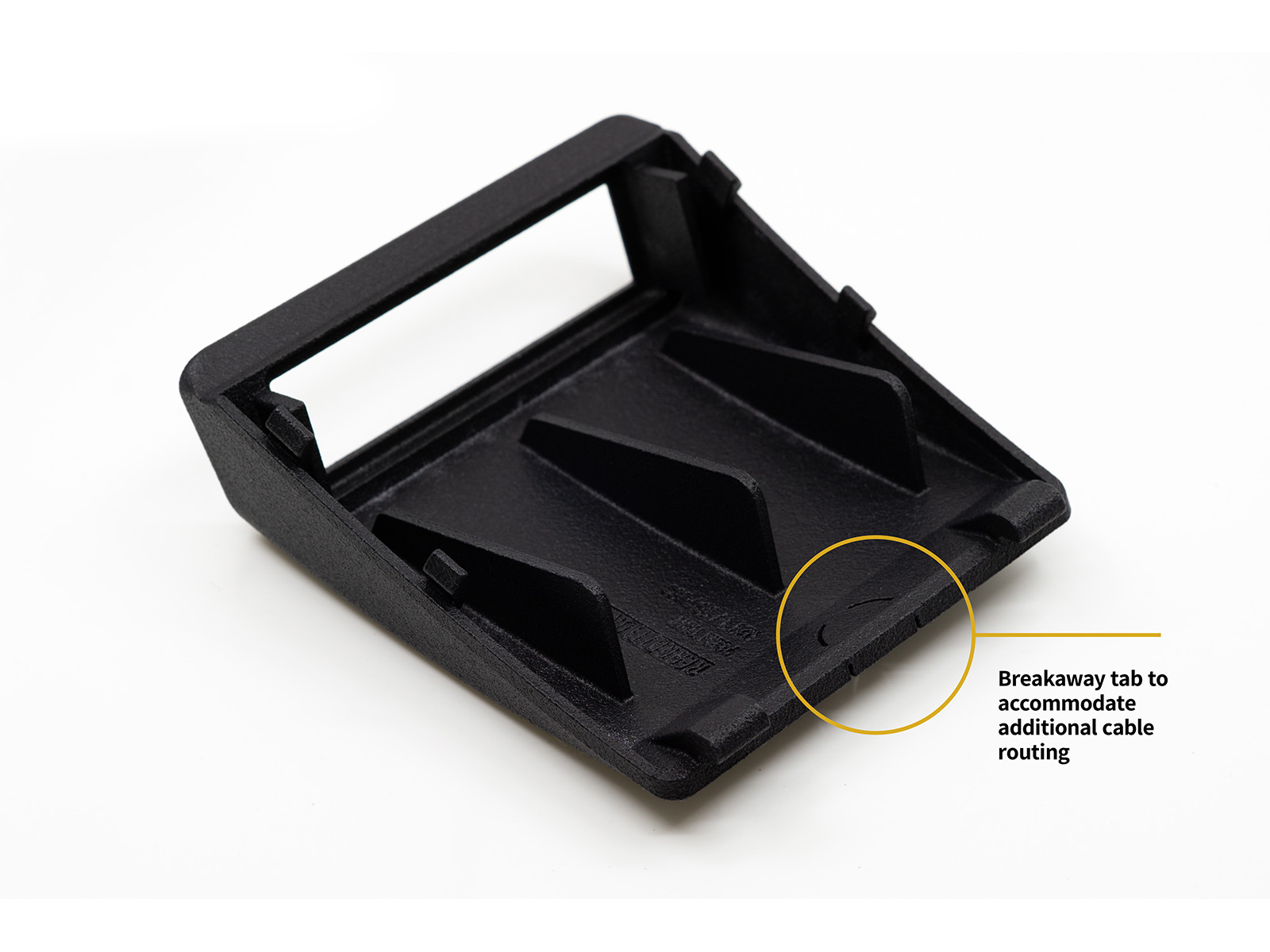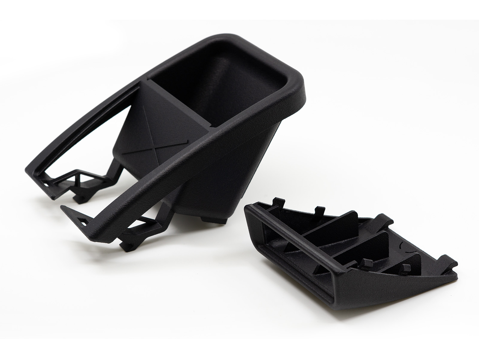 Manufactured from black PA12 nylon, the part offers excellent durability and a finish consistent with typical automotive interior plastics.