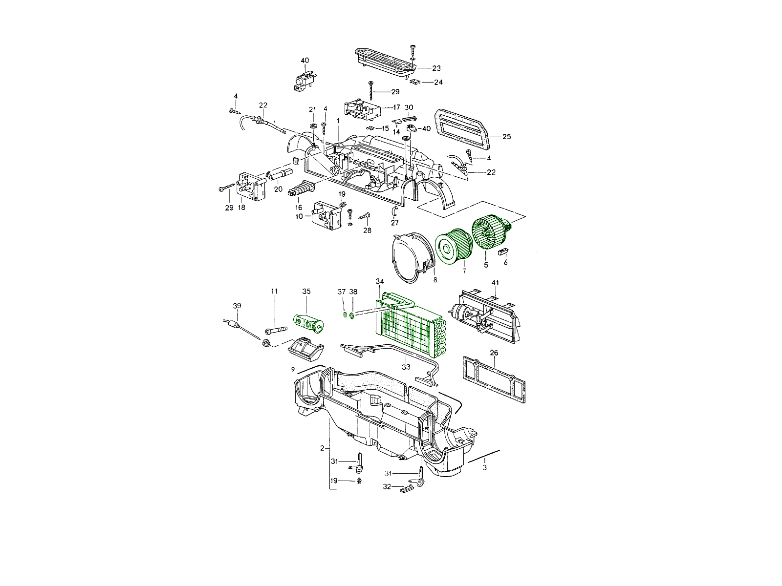 This complete air conditioning (A/C) service kit is a comprehensive set of HVAC parts engineered to refresh or restore the climate control system on your Porsche 993. It combines key components - the OE Match evaporator core, A/C blower motors, pollen (cabin) filter, expansion valve, and essential O-ring seals - giving you everything needed for professional-grade A/C performance and leak-free refrigerant flow.