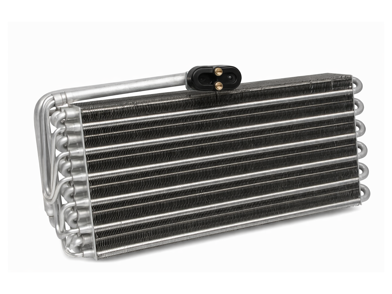 The A/C evaporator (96457390100) cools cabin airflow by absorbing heat from the incoming air via refrigerant circulation, delivering cold, comfortable air inside the vehicle.