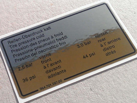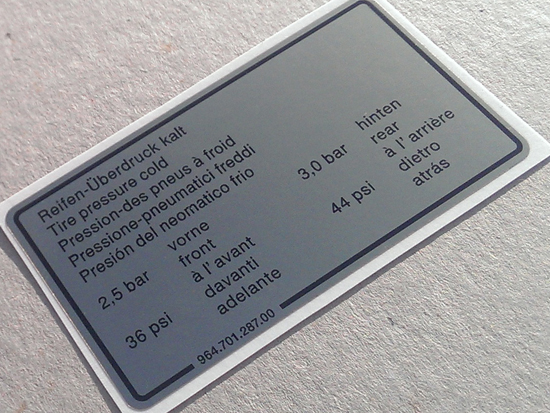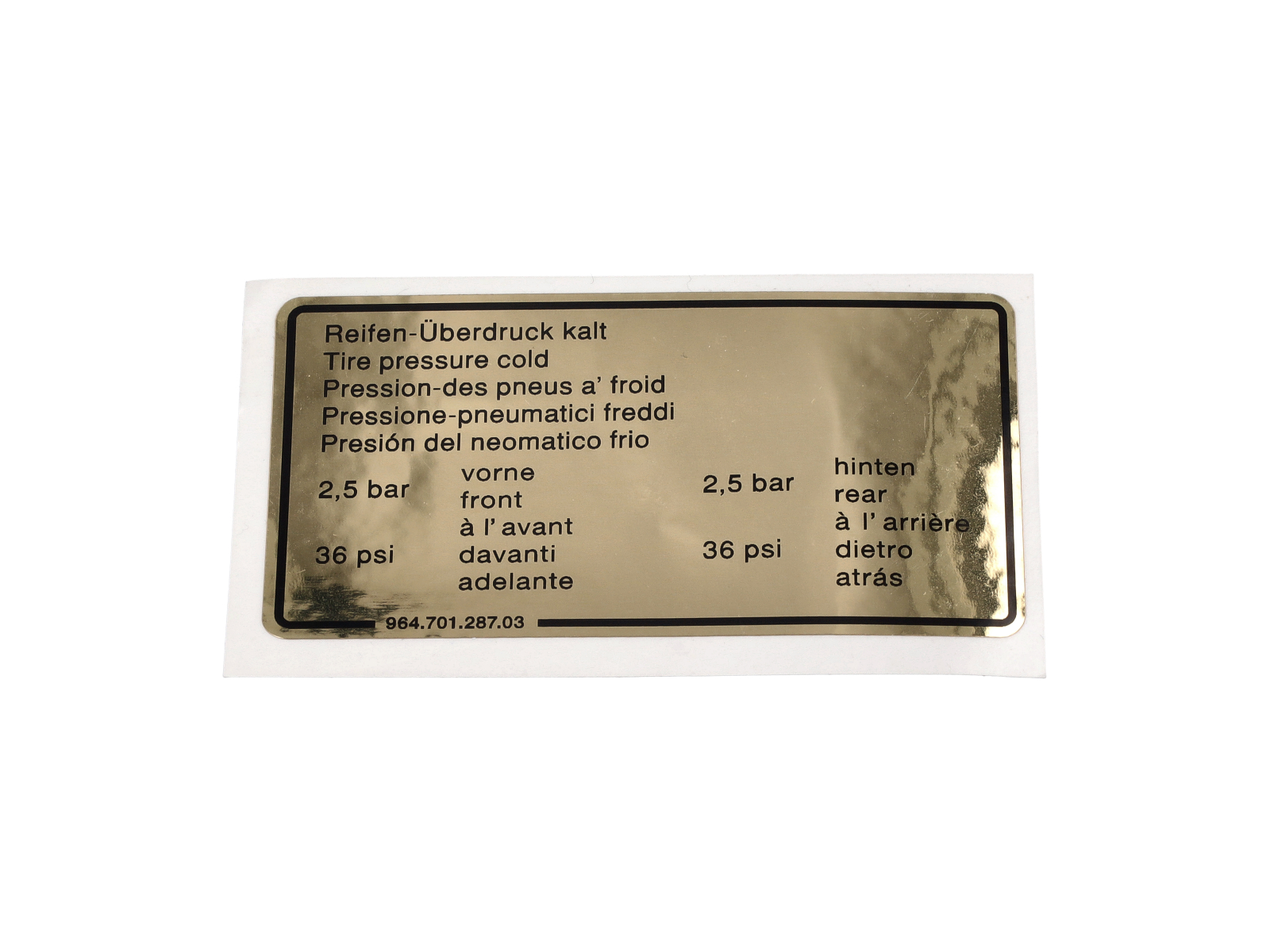 Data plate for tyre pressure Genuine Porsche part 96470128700