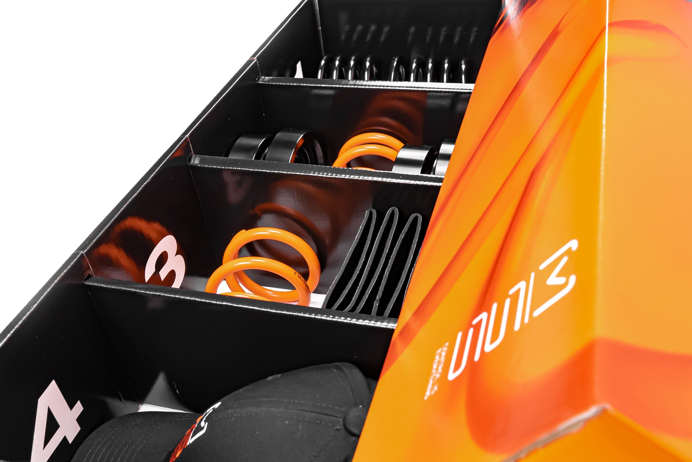 When combined with Plus-1 or Plus-2 wheels and tyres, the Eibach Pro-Kit is the finishing touch to a winning recipe for performance. Pro-Kit also reduces excessive fender well clearance, making your car look just as hot as it performs.