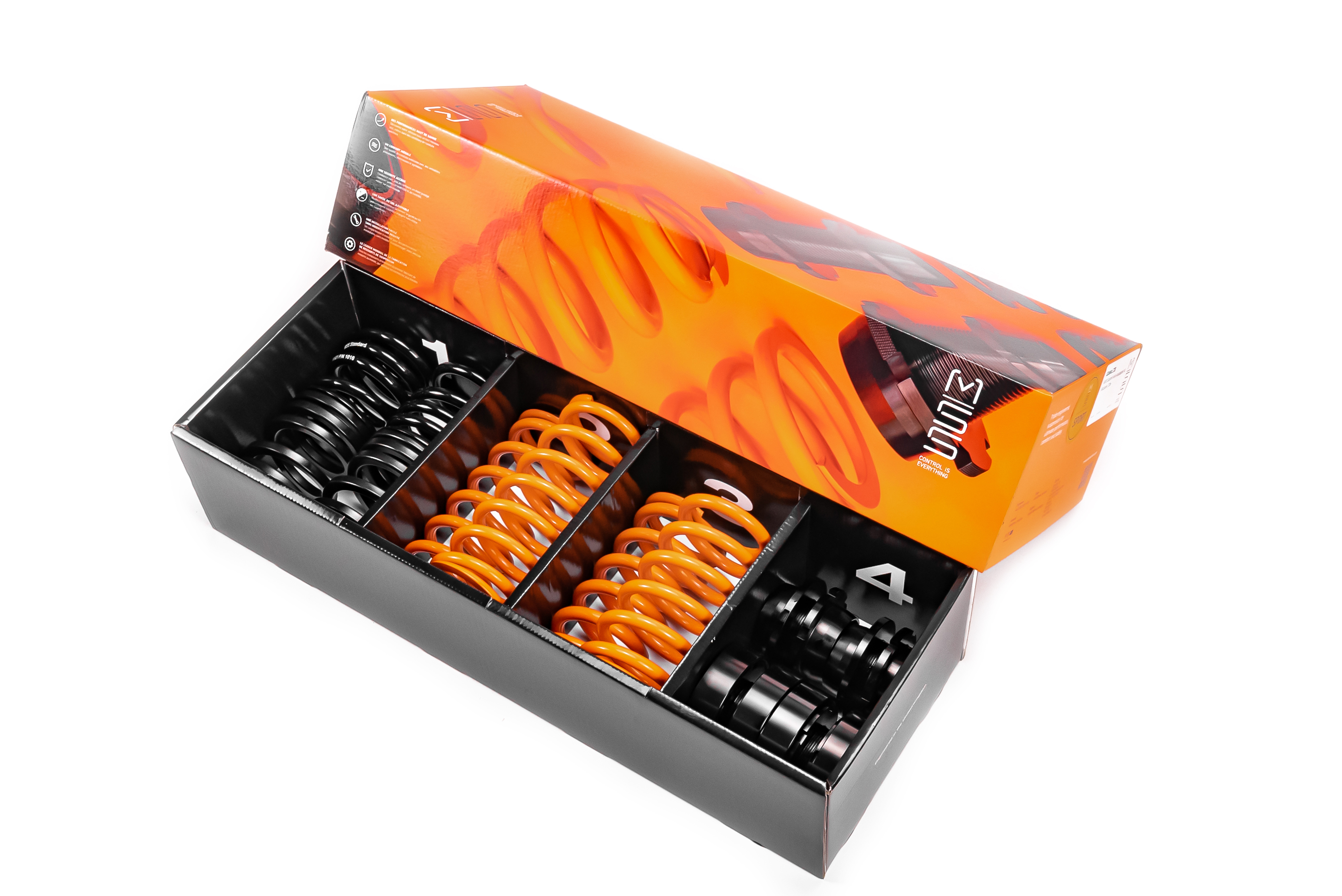 Front and rear height-adjustable (front and rear springs with height adjustment, usage only with factory dampers)