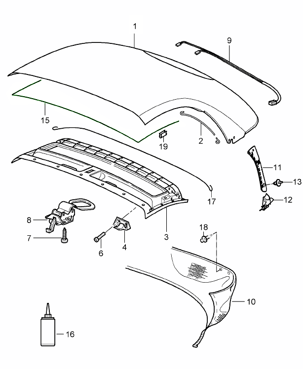 Cabriolet hood with heated rear screen. Porsche 987 Boxster