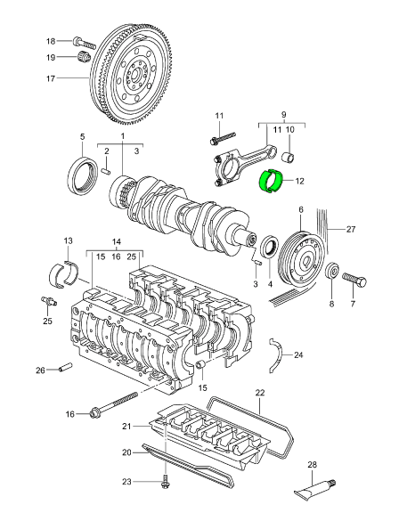 14 x Main crankshaft bearing shell Standard. Porsche 986 Boxster 2.5L (99610113164
