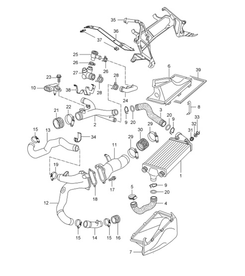 The intercoolers control the side to side flow design that flows along it's 16inch length. This IC will be more than sufficient for any highly tuned 996TTs or GT2s cars to applications of up to 900hp. DesignTek Porsche intercoolers produces high-flow rate and dramatic temperature reduction which are mainly contributed by two key factors. Firstly, the great temperature reduction is accomplished by a 40% larger than stock sized intercooler cores in which each core has the capacity flow rate of 750 CFM. Secondly, which in our opinion is the most important element of an IC; the inlet/outlet end-tanks. Our end-tanks are optimized to greatly increase air flow and reduce pressure drop which yields to improved efficiency. External aluminium surfaces are preserved with silver/grey protective coating.
