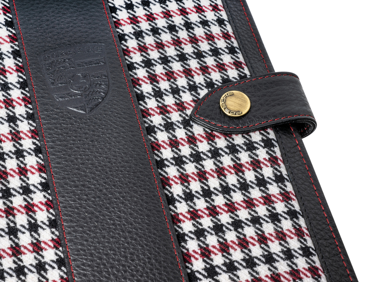 Owners manual case with Pepita seat fabric. Embossed Porsche Crest on the front, and magnetic snap.