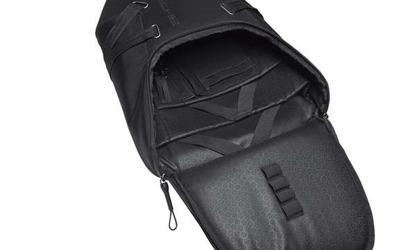 Porsche Sports RucksackYour partner in sports performance. Main compartment with opening for headphone cable. Water-repellent outer zips. Ergonomic backboard with air-circulation system.