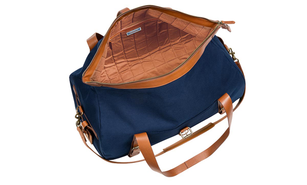 Limited to 1,356 units. Dimensions: 61 x 36 x 40 cm. Capacity: 88 l. Weight: approximately 2.3 kg. 100% cotton with high-end leather details. Polyester lining. In dark blue/fawn brown. Made in Italy.