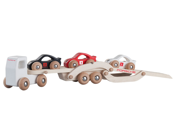 Encouraging young talents is a question of honour at Porsche. And because, when it comes to preparation, you can never start early enough, we've brought out something special for fans aged two and upward. A 32 cm-long wooden racing truck with a cab unit, a trailer and three racing cars in the Porsche Motorsport colours of red, white and black. - For fans aged thwo and upward - Wooden racing truck with a cab unit and a trailer - Three Porsche racing cars - Colours of red/white/blackPlease Note:
