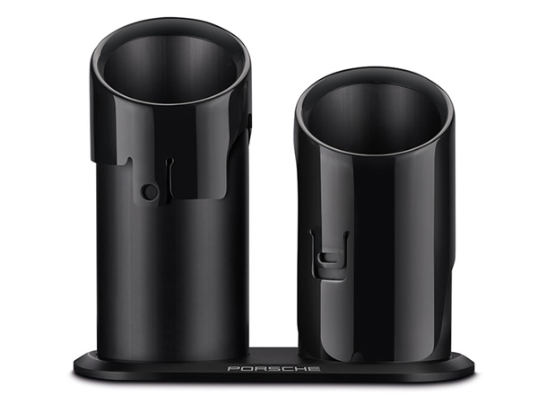 High-quality pen holder with original tailpipes of the Porsche 911 Carrera sports exhaust system.