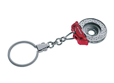 Reproduction of the Porsche brake disc and caliper in miniature. Movable and perforated brake disc. Omega ring for keys.