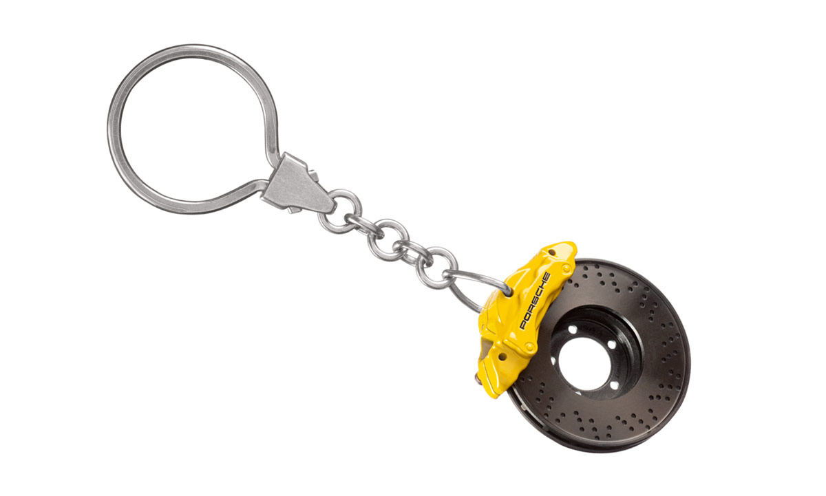 Technology on your keychain. With a true-to-original rotating Porsche braking disc. Suitable for all Porsche car keys.