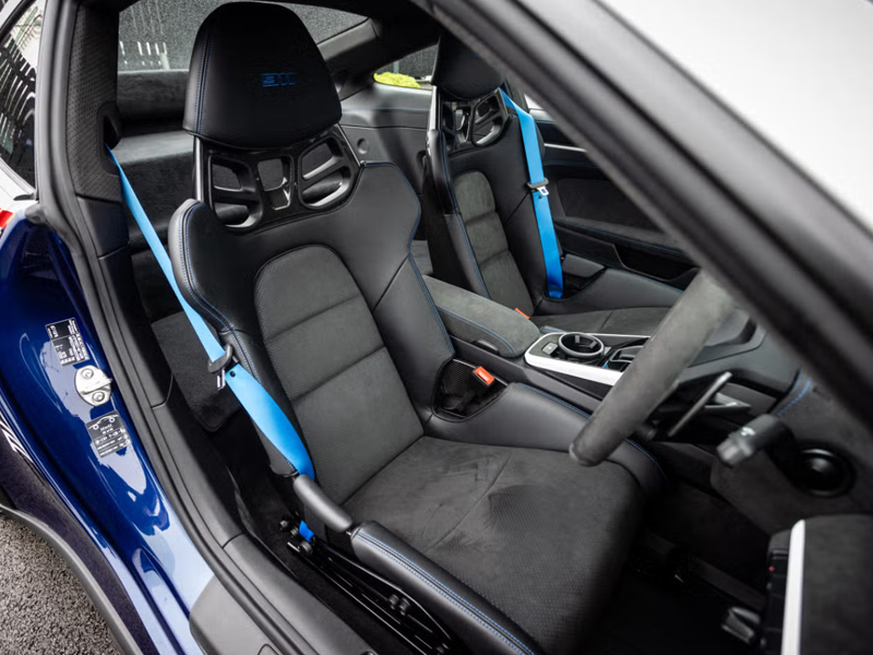 Interior colour: Race-Tex interior Rallye Design Package with extensive items in leather, stitching Sharkblue