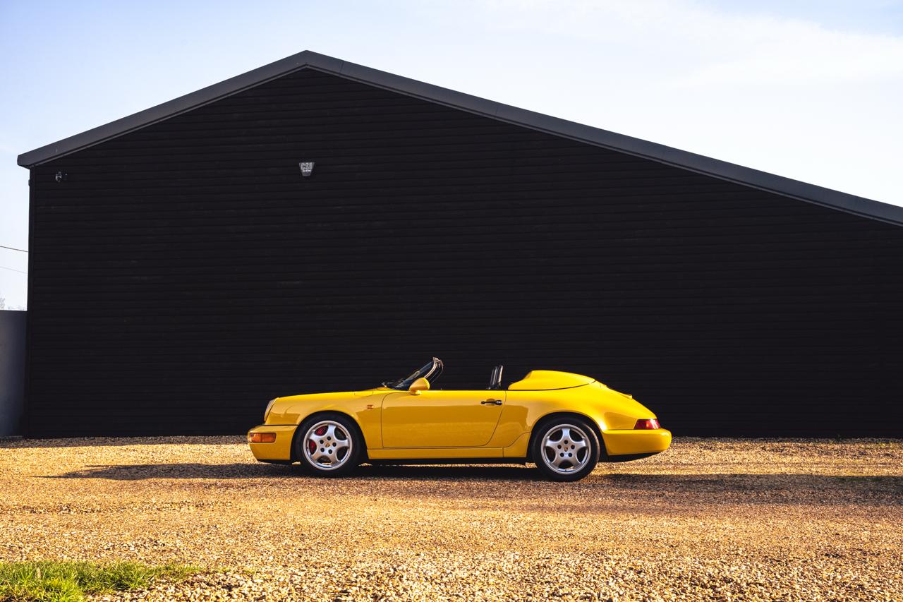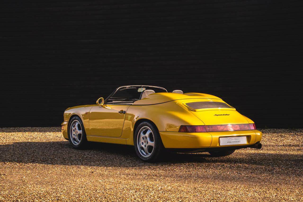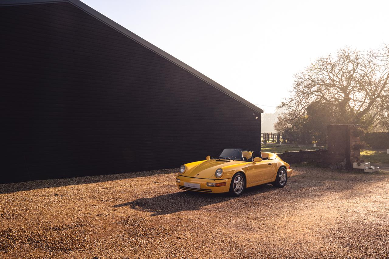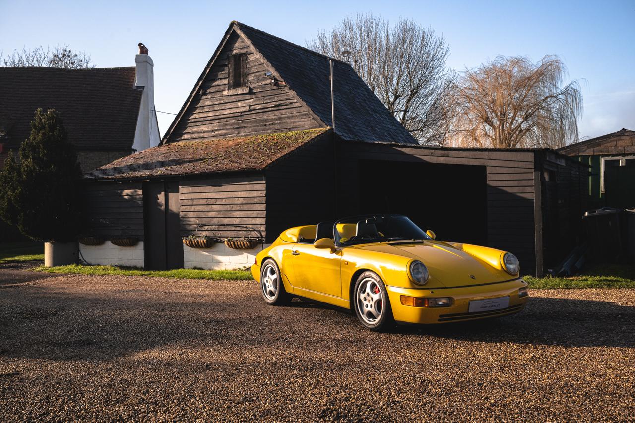 By the early 1990s Porsche was well into production of the 964 generation 911 when the low-volume Speedster joined the range. Only 925 examples were built worldwide. Around half were delivered to the United States, with most of the remainder supplied in left-hand-drive European specification, making right-hand-drive cars the rarest and most desirable Speedster derivative. These cars also benefited from key upgrades including power steering, ABS, front coil-spring suspension, and an electrically operated rear spoiler.