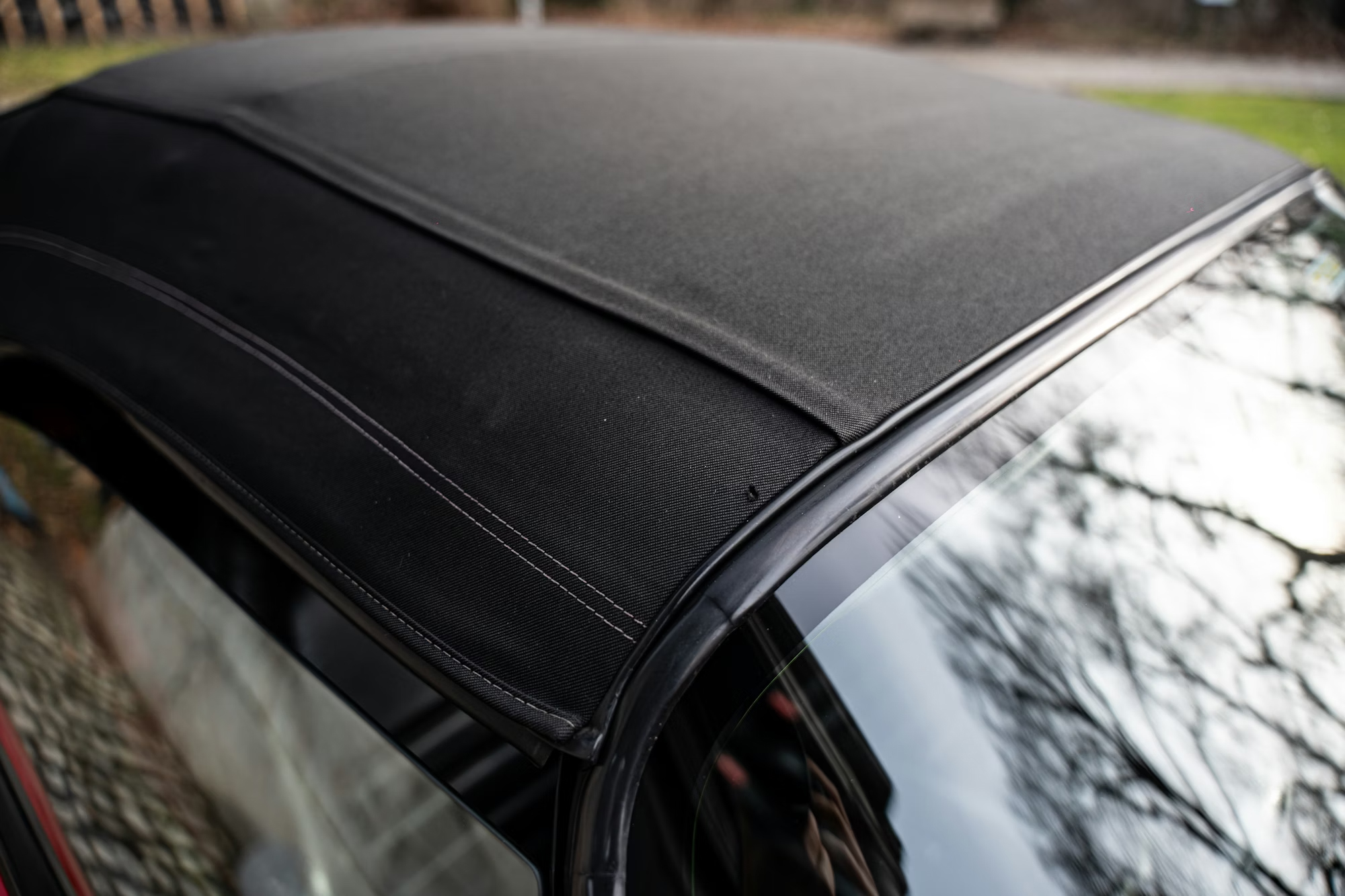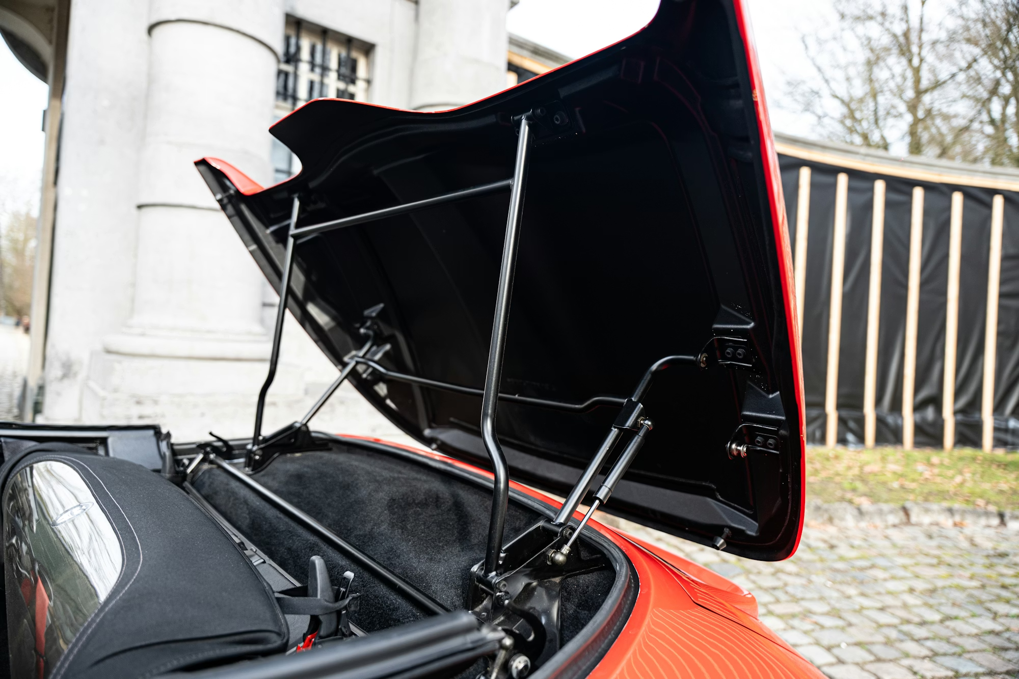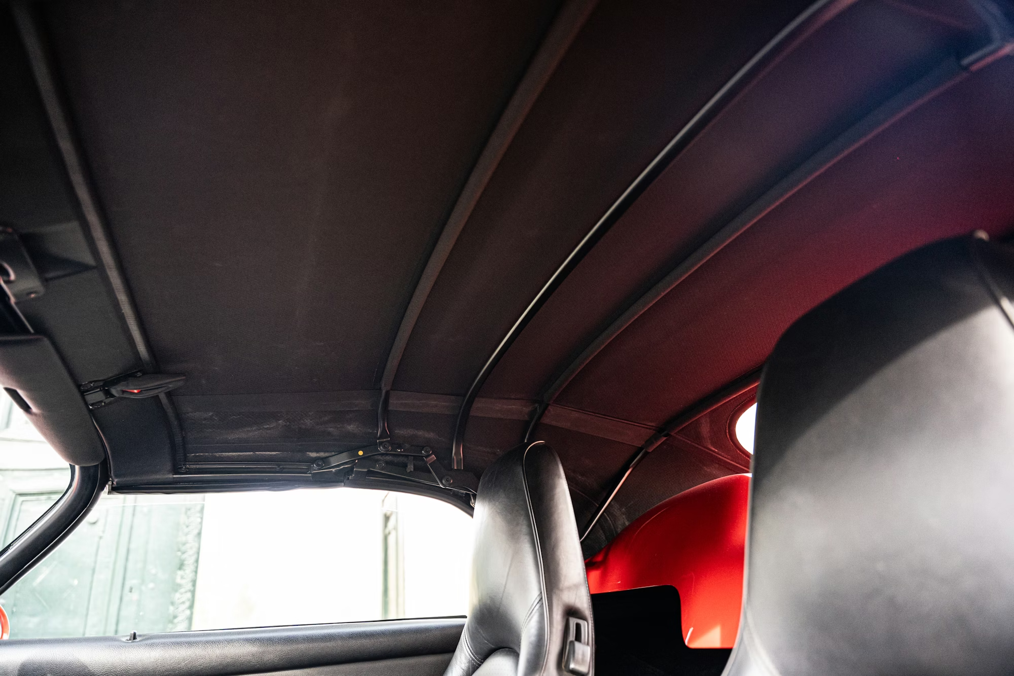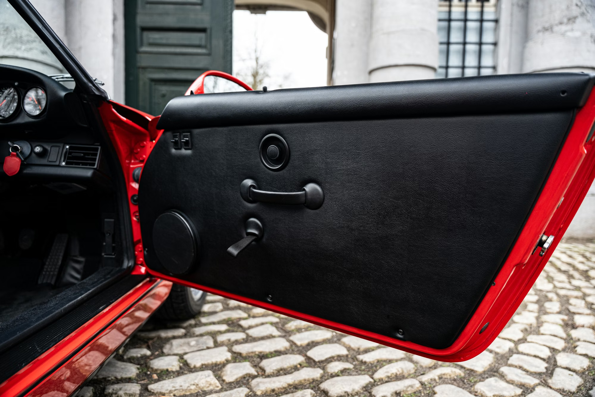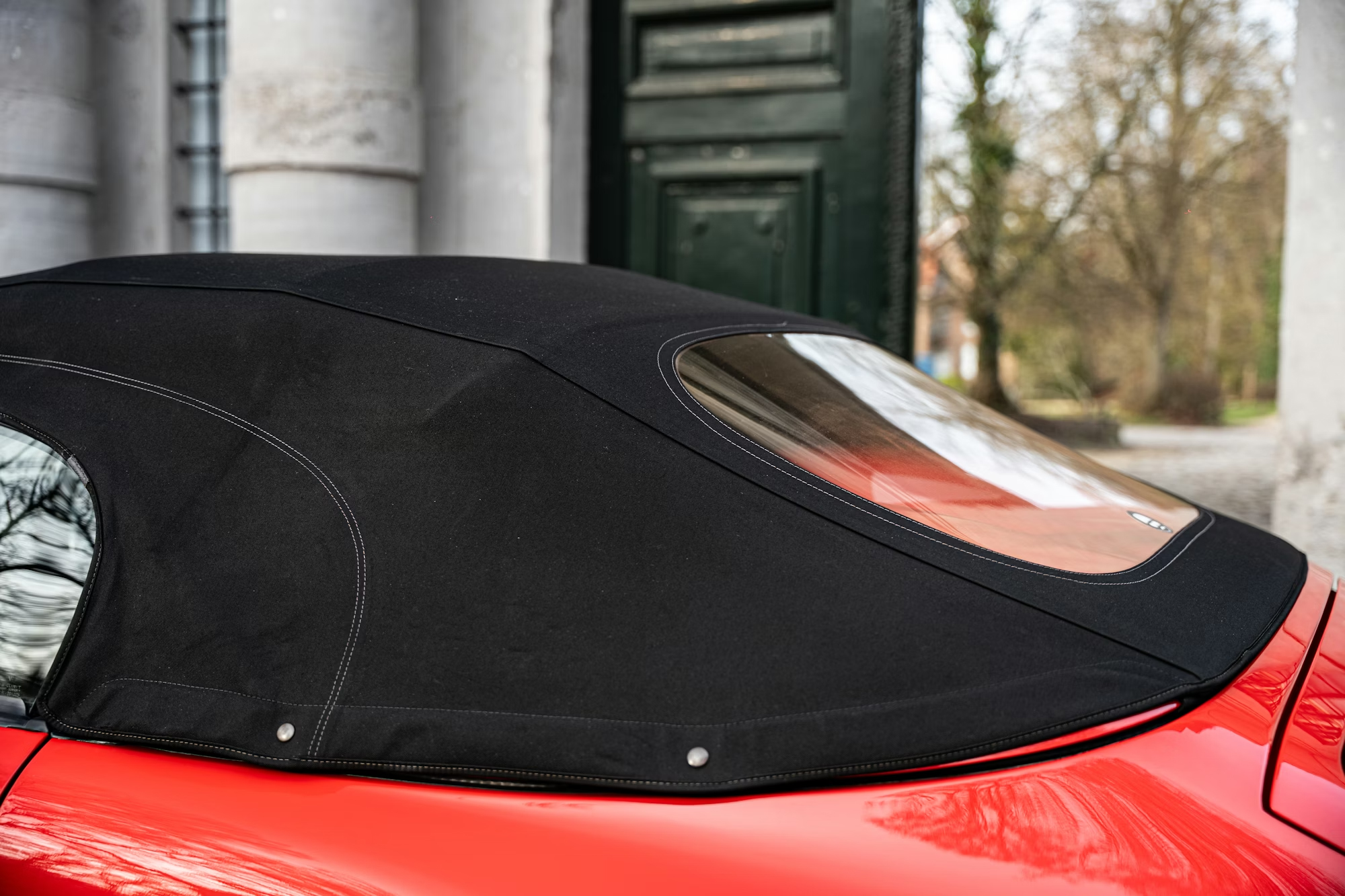 - This example is finished in the iconic shade of Guards Red with a contrasting black soft-top roof, over a black leather-trimmed interior.