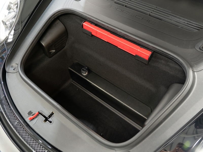 The bodywork is dressed in Porsche’s slick black paintwork, offset by the Gold magnesium wheels which is a fantastic colour combination. It’s a sharp and sophisticated aesthetic and is an excellent combination for the GT2RS’ overall exterior image. The Carbon Fibre components around the chassis bring extra beauty to it, as do the Yellow Brake callipers on the Ceramic Composite Brakes.