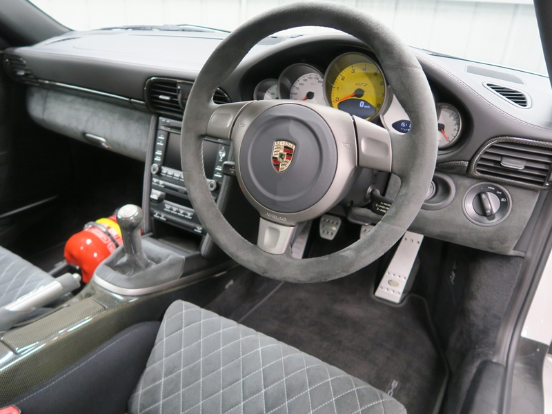 Our stunning UK supplied Carrera White car has covered just 4157 miles with a recent major service at our local Porsche centre. Above the standard GT2 specification the car was also optioned with the clubsport package, carbon pack and extended carbon pack, door entry guards in carbon, wheels painted satin black, extended navigation for PCM, telephone module and red tail lights. Thanks to the low mileage, it is in immaculate condition ready to be enjoyed!