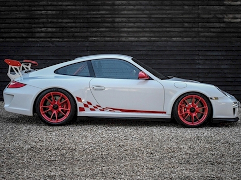 Highly collectible Porsche 911 997 GT3 RS with extremely low mileage just 14,400, presented magnificently in Carrara White with Black Leather and Alcantara Interior.