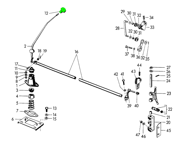 The gearshift assembly enables the driver to control transmission gear changes — linking the gear lever to the gearbox via linkages, cables, or electronic selectors.