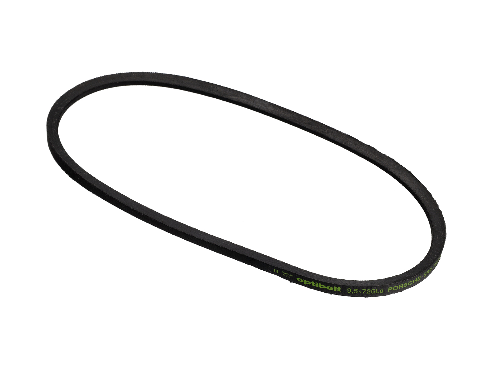 The V-belt runs between the crankshaft pulley and the alternator/fan pulley. It’s the primary mechanical link that spins the alternator to charge the battery and, on air-cooled 911s and 914-6 models, turns the engine cooling fan.