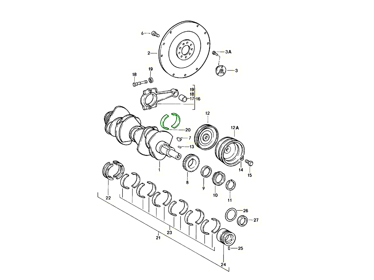 This 15-piece set (12 main bearing shells + 2 thrust bearings + 1 Nose bearing) supports the crankshaft along the crankcase, maintaining ideal oil-film clearance, pressure, and alignment throughout the engine’s life. Manufactured to OEM geometry, the set guarantees perfect crush fit, consistent wall thickness, and stable lubrication under the high temperatures and loads typical of Porsche’s flat-six engines.