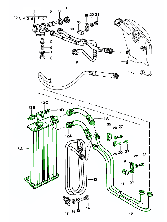 Diagram ref no 11, 11A, 12, 12A, 13A, 13B, 13C, 13D, 18, 20, 21, 22, 23, 25, 26 and 27.