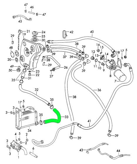 Position: Between oil cooler and engine or chassis mount — isolates vibration and supports alignment