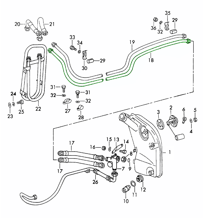 The engine cooling oil system and pipes play a crucial role in your Porsche’s performance and reliability. These components deliver and regulate oil flow between the engine, oil cooler, and filter, maintaining stable oil temperature and pressure. By keeping the oil cool and circulating efficiently, they help prevent overheating, reduce friction, and ensure smooth engine operation — even under extreme driving conditions.