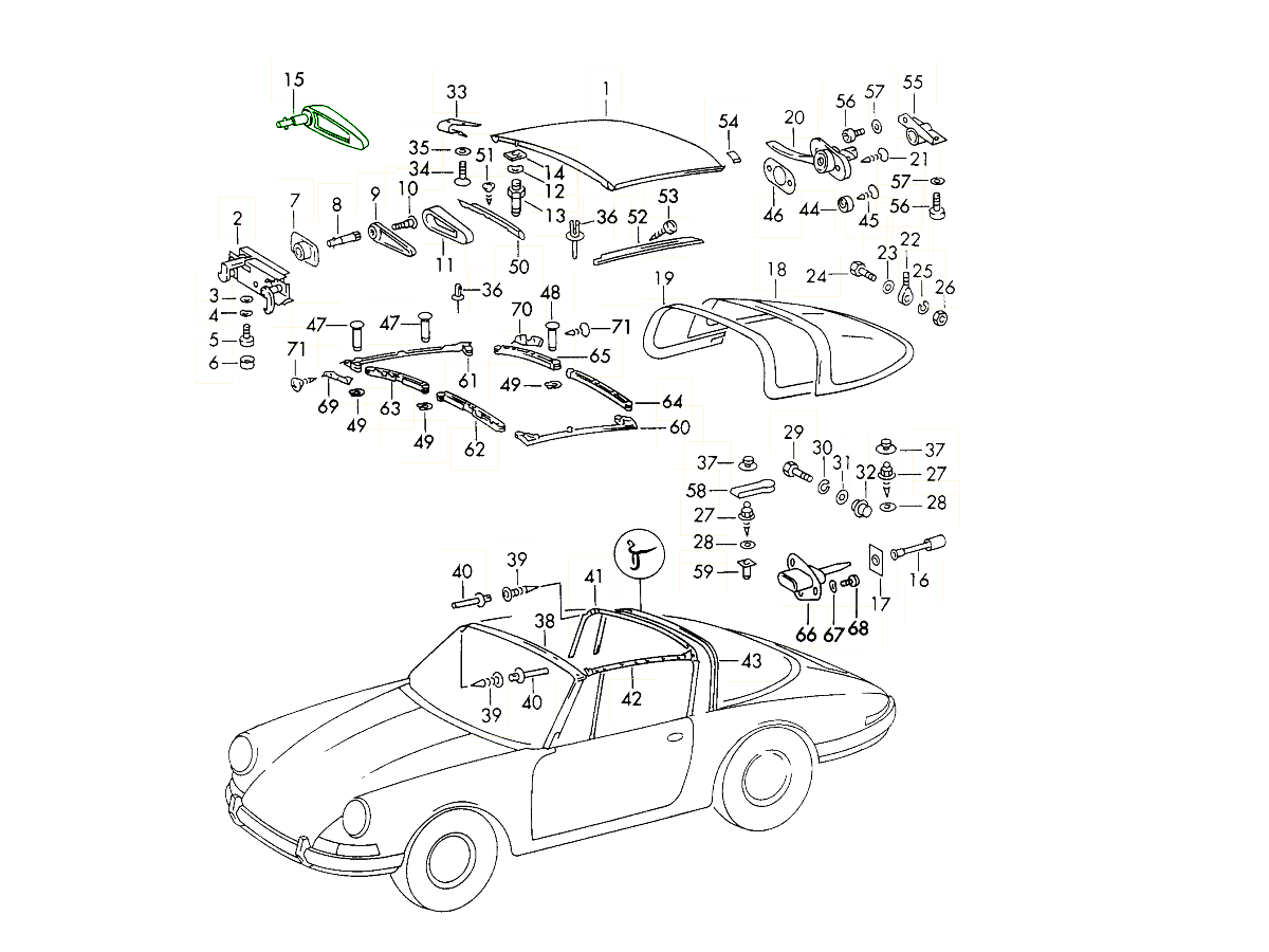 Our collection includes removable roof panels, latches, seals, and headliners manufactured to OEM specification, ensuring perfect alignment and sound insulation for your classic or modern Porsche Targa.
