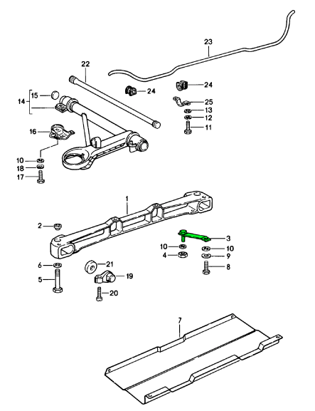 On vehicles originally equipped with a steel cross-member, converting to this aluminium version requires two additional mounting brackets (part number 911 341 031 01) for proper installation. In essence, this part is a structural component of the front end that directly supports suspension geometry and ensures stable alignment.