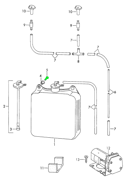 Direct-fit washer bottle cap with integrated hose for classic Porsche 356, 911 and 912 models. Restores proper sealing and fluid delivery, preventing leaks and contamination in the windshield.