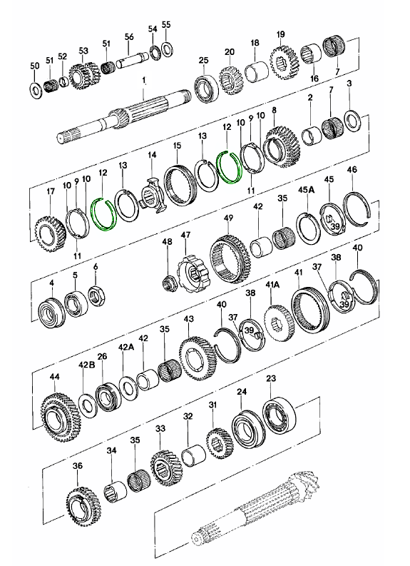 During gearbox servicing, it’s highly recommended to replace synchro rings, brake bands, and dog teeth as a complete set to ensure balanced wear and consistent operation.