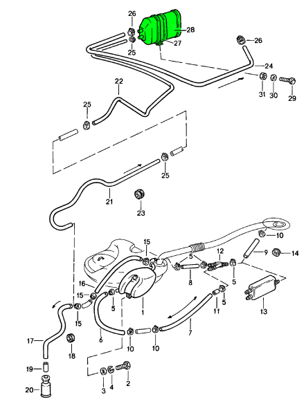 The carbon canister is a key component in your Porsche’s EVAP (Evaporative Emissions Control System). It’s filled with activated charcoal that absorbs and stores vapours from the fuel tank.
