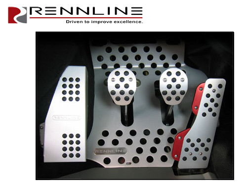 Rennline's rubber grip aluminium pedal covers are the ultimate interior upgrade for any performance automobile. Rennline has taken this pedal design to the next level by utilizing rubber grips that can easily be replaced if needed. Each pedal set comes with several replacement rubber grips, but additional grips can be purchased separately at any time. Rennline pedal sets are constructed of anodized aircraft grade aluminium and all stainless steel hardware.