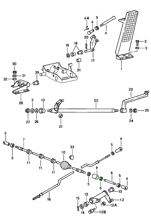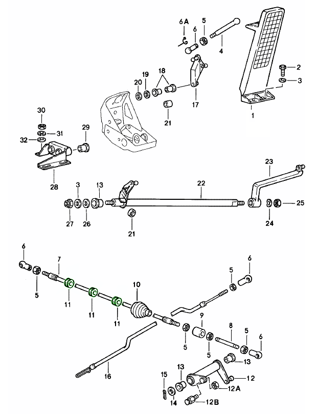 • Deteriorated linkage bushings or return springs reducing pedal feel.
