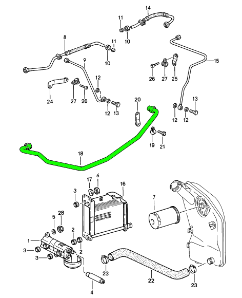 The engine oil pipes and hoses in your Porsche are essential components of the lubrication system, responsible for transporting oil between the engine, oil cooler, and various internal components. These lines maintain the correct oil pressure and flow, ensuring smooth operation, reduced friction, and long-term protection of your high-performance engine.