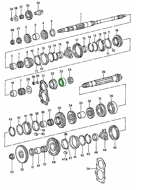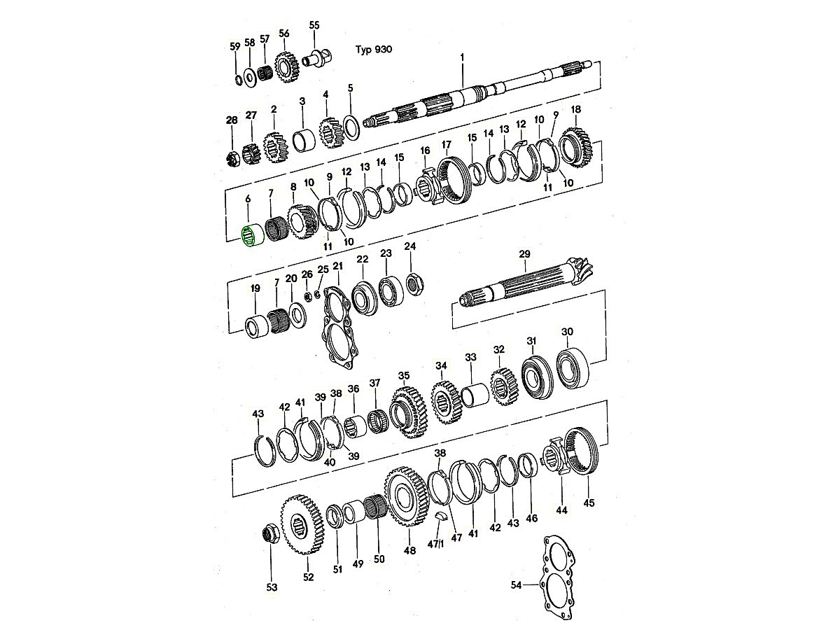 Cylindrical Roller Bearing, Engineered to match the original equipment’s dimensions, load rating and fitment, this bearing provides a direct-fit replacement for the factory unit. This bearing supports the main shaft or input/output shaft of certain Porsche manual gearboxes. It ensures smooth rotation, proper alignment of the transmission internals and helps reduce friction and wear during operation. It used near the collar nut or locknut area.